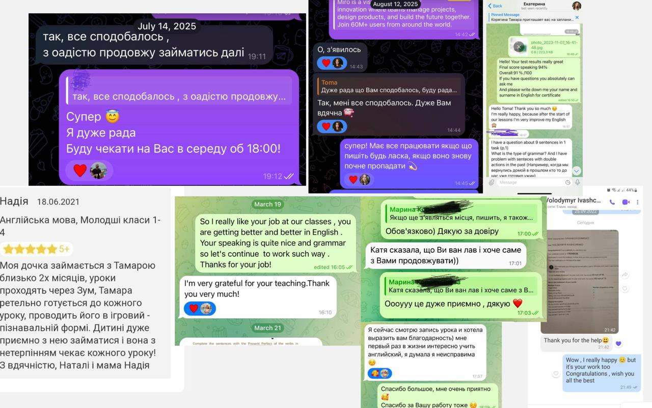 📍використовую тільки сучасні підручники English File, Roadmaps, Life Vision, Speakout. Всі необхідні матеріали надсилаю.